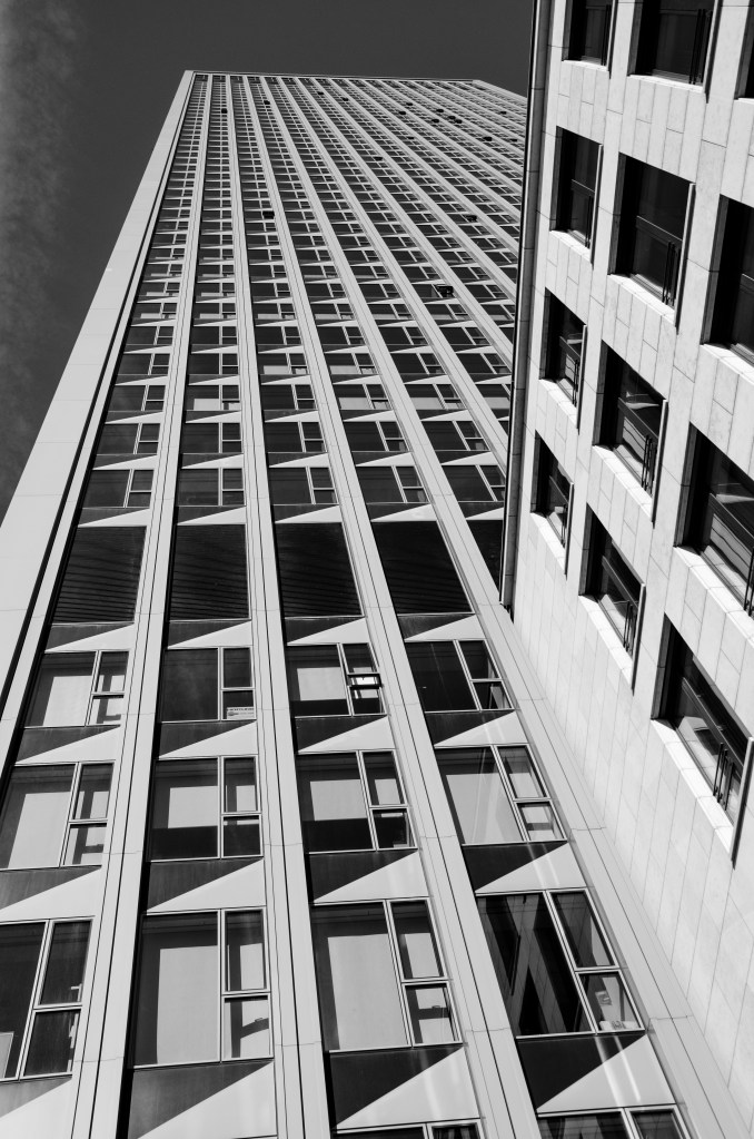 Le foto hanno per oggetto la sottile sensazione di estraneità che la verticalità e la massa molto pronunciata di certi edifici genera.
