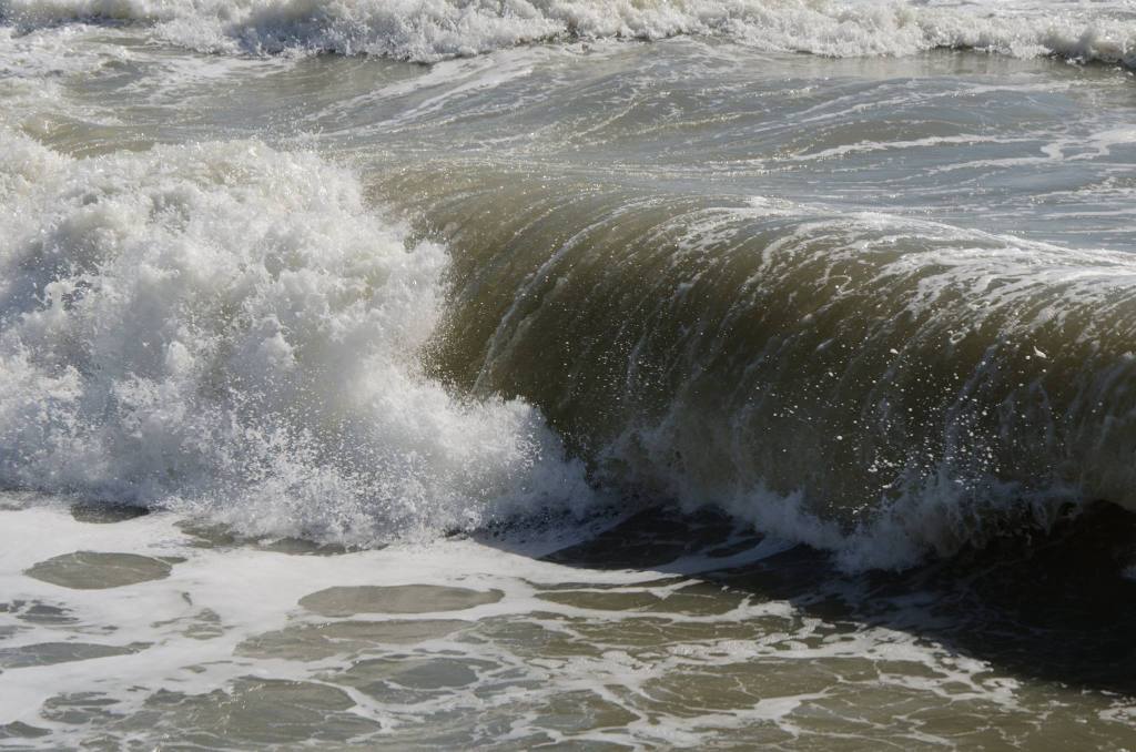 Le foto si ritraggono onde ancora lontane dalla spiaggia o le piccole onde che si distendono sulla spiaggia.