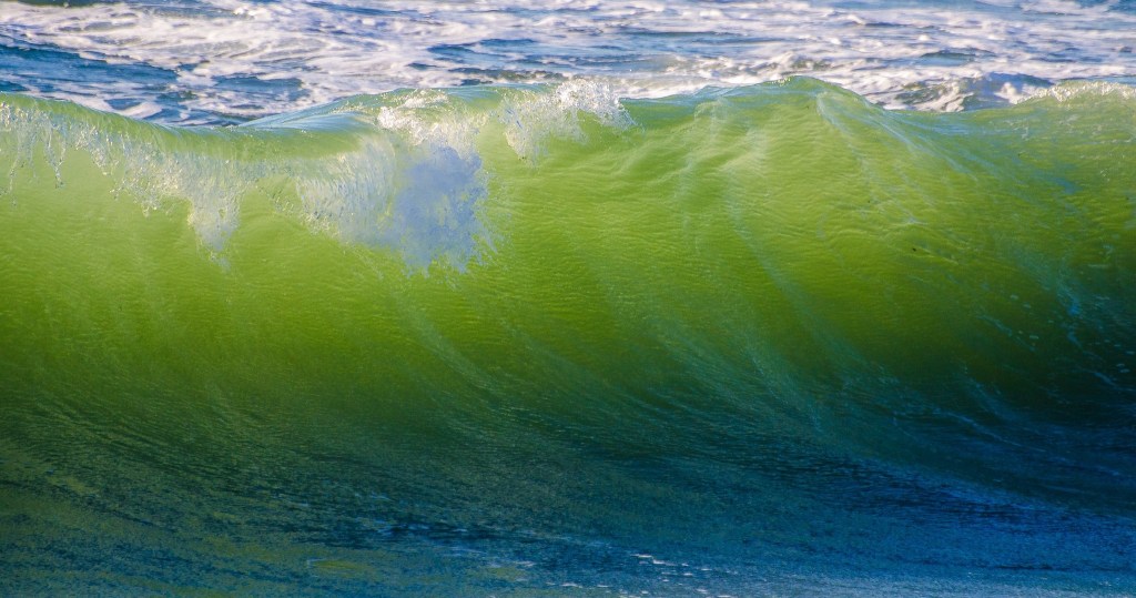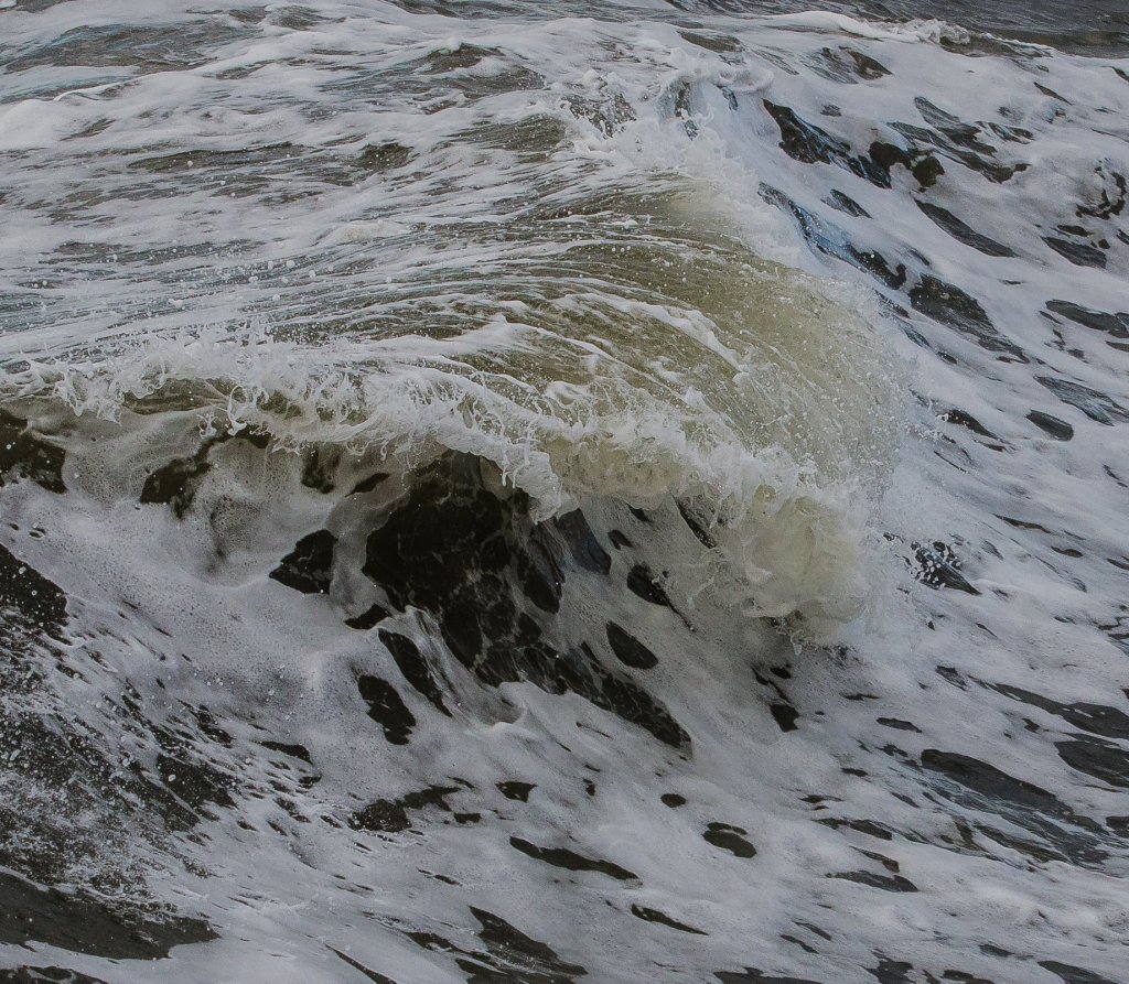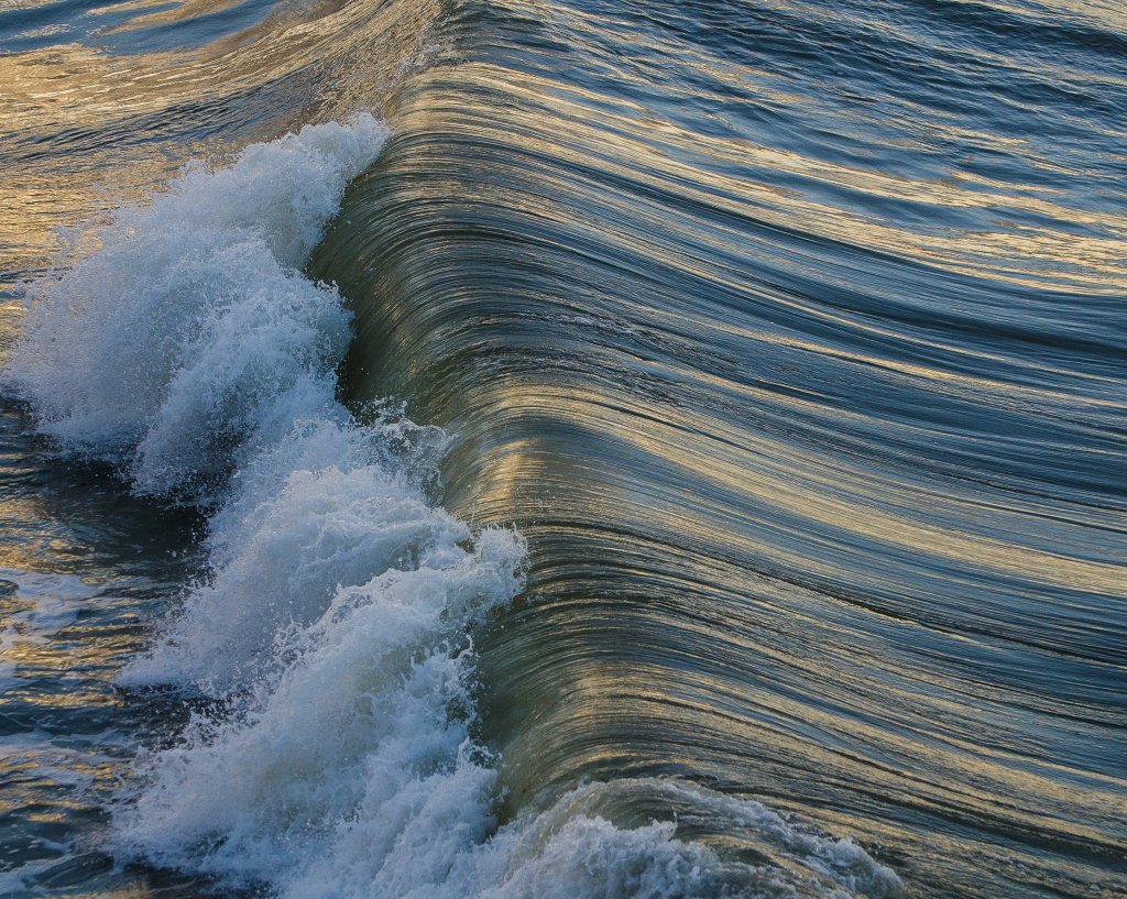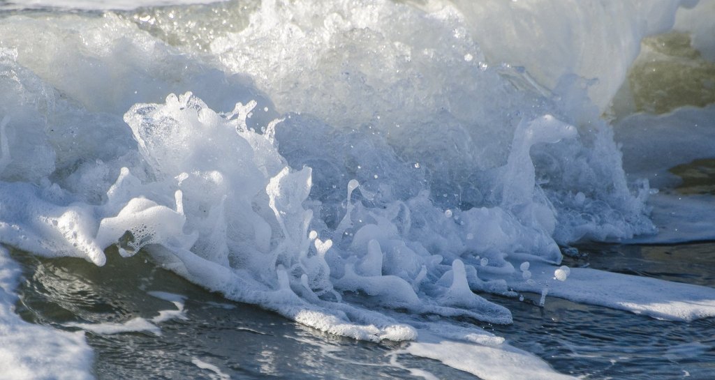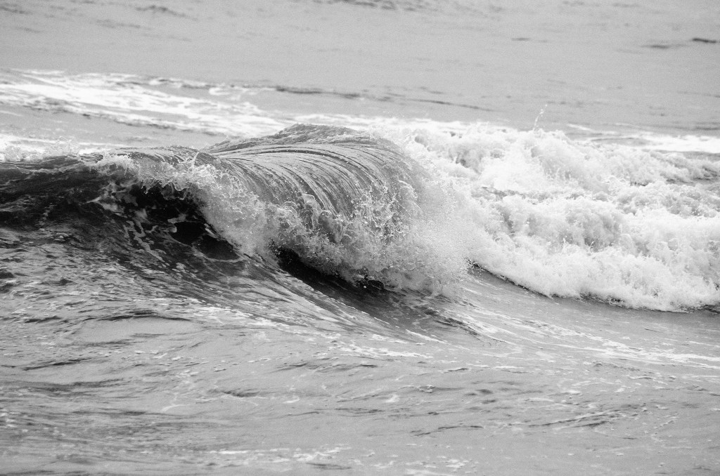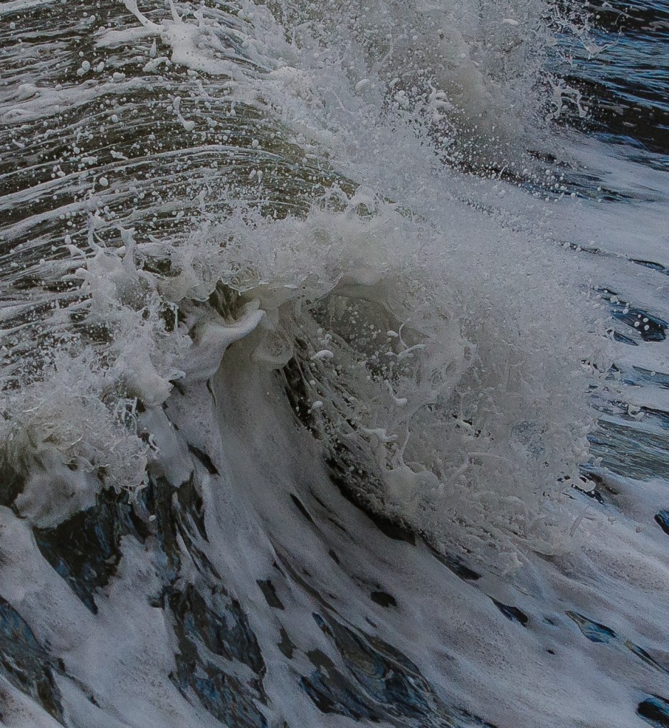 L’acqua appare solida e l’estrema dinamicità dell’onda diviene staticità nell’istante temporale bloccato nella foto.